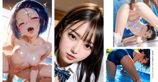サークル、ステーキ君さんによる王道的な同人エロ漫画…それを生成AIの画力で描き出すとこんなに破壊力が高まるのかと、実感できます。AIが描くスク水は最高です。